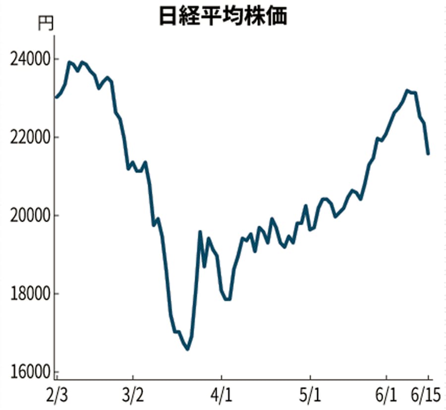 日経平均終値 774円安の2万1530円 感染 第2波 警戒 日本経済新聞