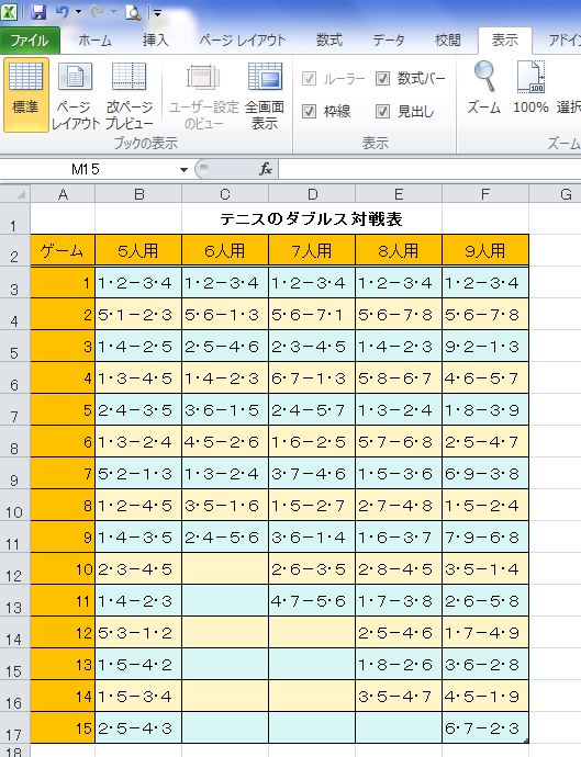 ミニテニス乱数表 2面用 5 25人対応 Xls Google Drive