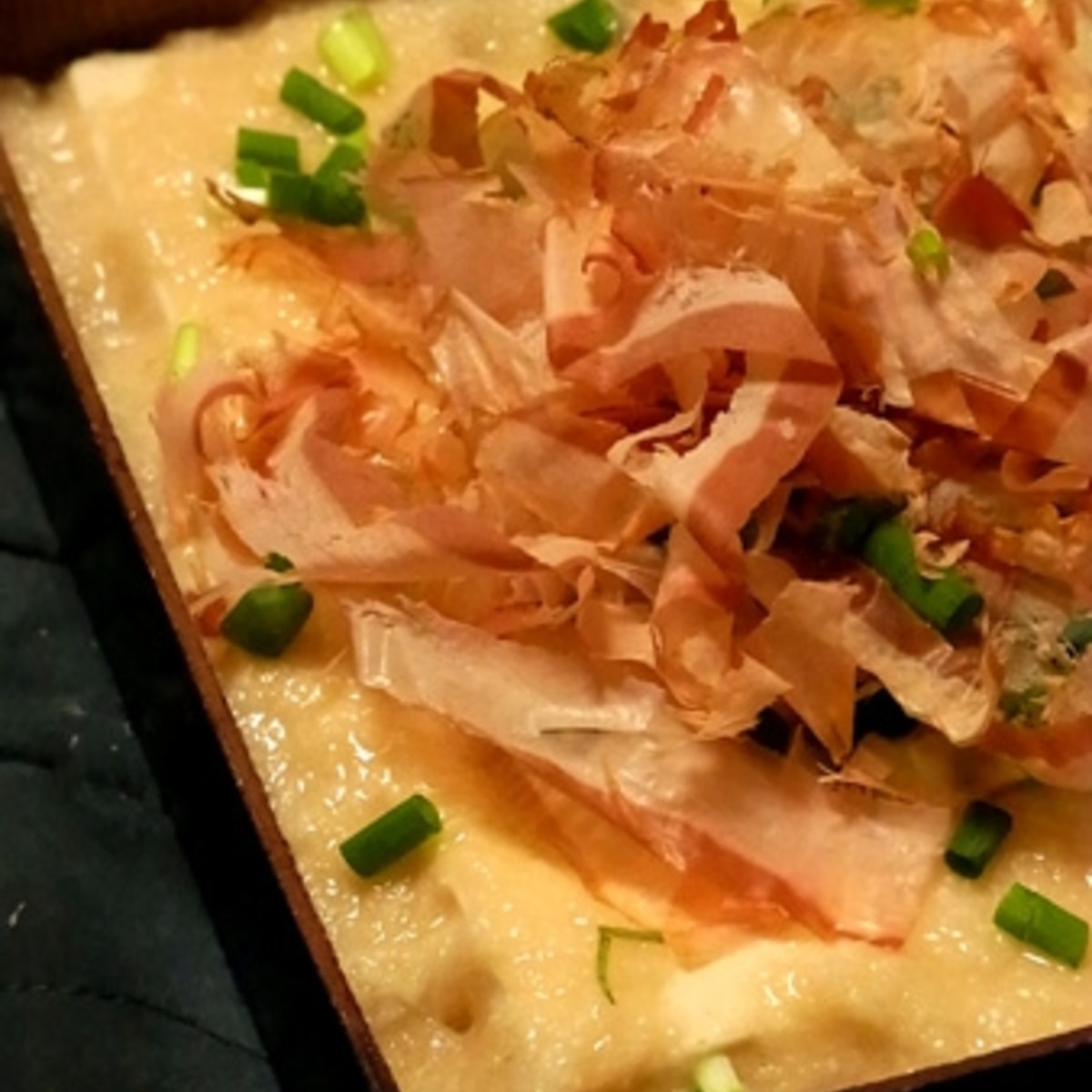 杉苔 とろろの色がヤバイだけで味は普通の豆腐とろろステーキ なので アニメに出てくる中途半端な料理下手キャラが作る 見た目はアレだけど味は悪くない料理 みたいになっちゃった